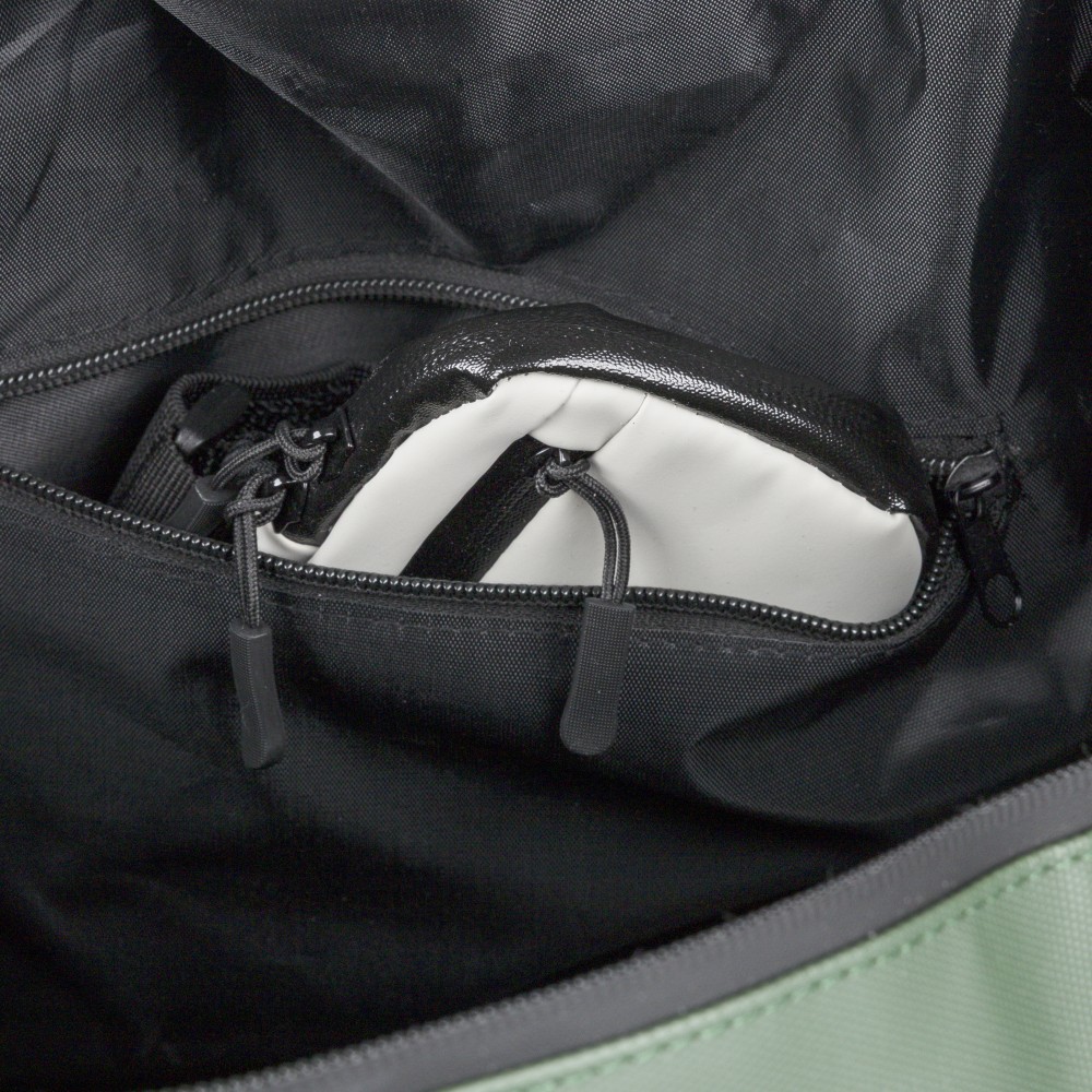 600D poliészterből készült rPET sporttáska 210D béléssel és vízlepergető PU bevonattal, 40 literes űrtartalommal. Elülső és oldalsó cipzáras zsebbel, hálós oldalzsebbel, két fogantyúval és állítható vállpánttal rendelkezik. Külső felületén rPET címkével ellátva.
