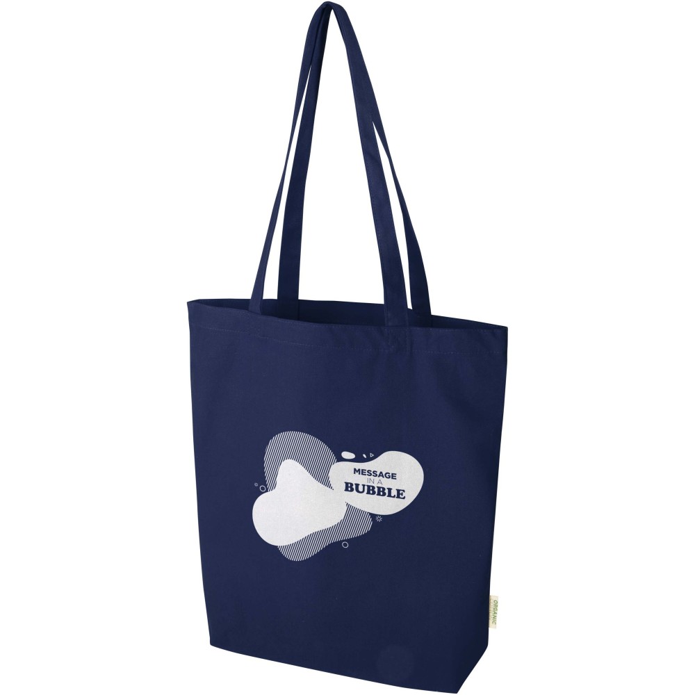 OCS tanúsítvánnyal rendelkező, 100% organikus pamutból készült Odisha bevásárlótáska környezetbarát és megbízható megoldást kínál. A táska a széles talpkialakításnak köszönhetően extra tárolóhelyet biztosít, hosszú fülei pedig kényelmes hordozhatóságot tesznek lehetővé a mindennapok során. A táska teherbírása 5 kg. Űrtartalma: 11 liter. 180 g/m2 anyag.