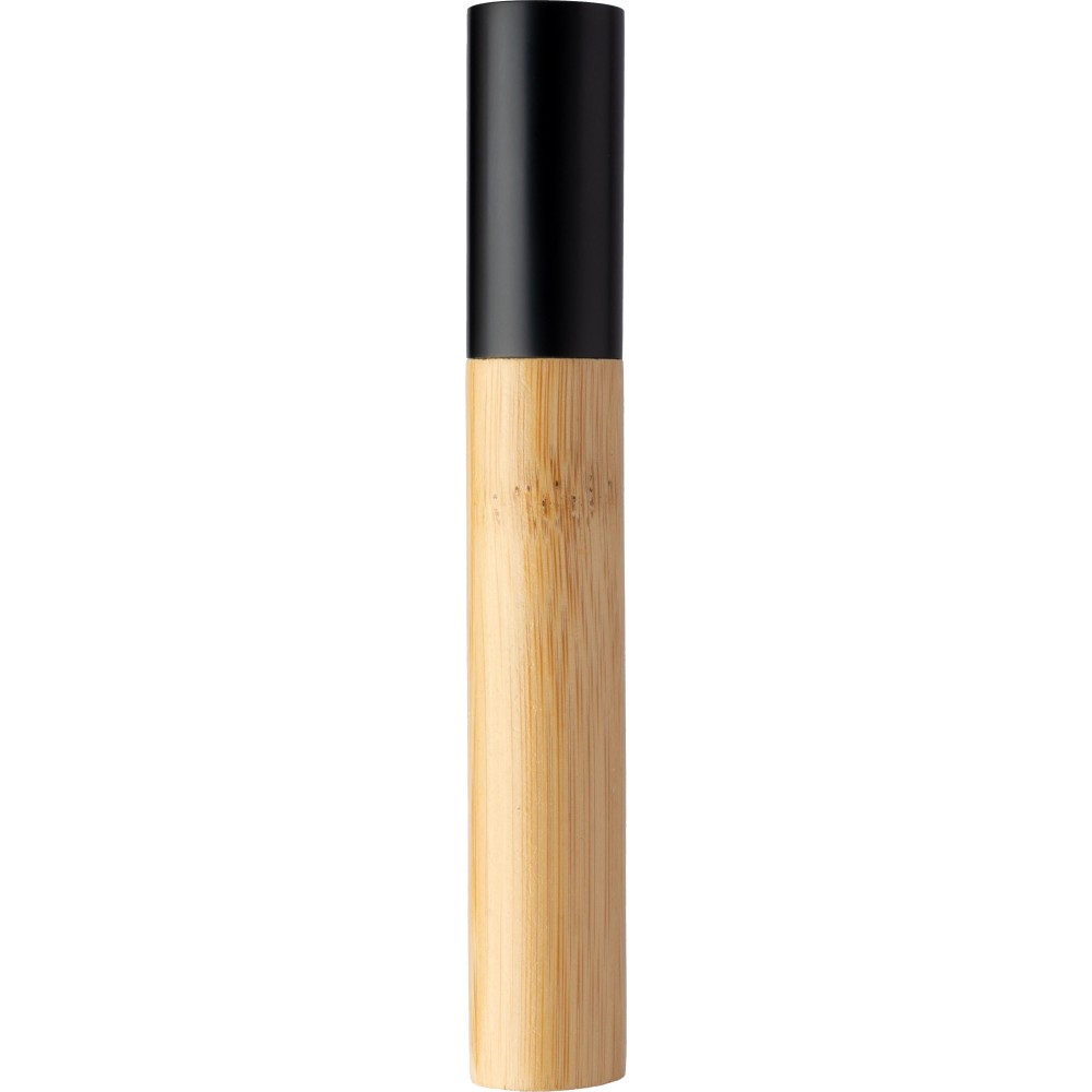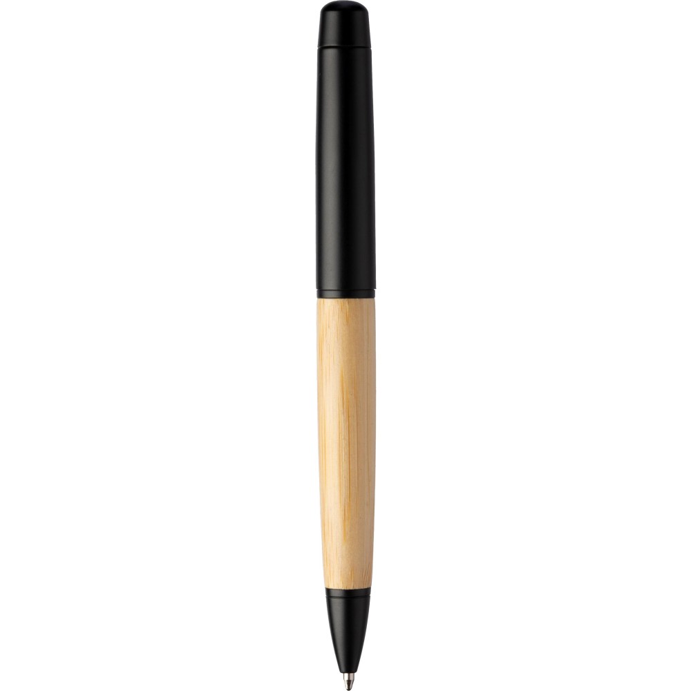 Rozsdamentes acél golyóstoll csavaros mechanikával, bambusz markolattal. Kék színű, fém Parker tollbetéttel. Barna kartondobozba egyedileg csomagolva érkezik.
