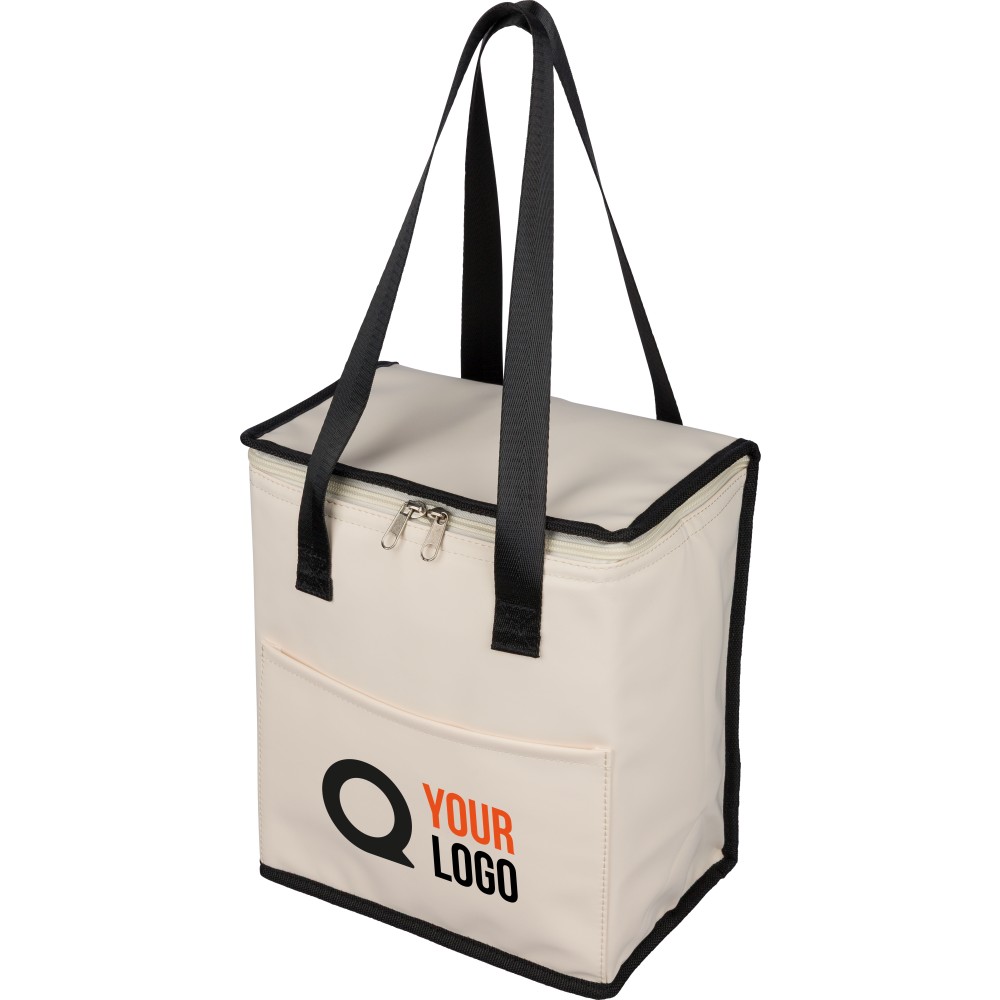 Újrahasznosított PU anyagból készült hűtőtáska 9 literes űrtartalommal, 210D újrahasznosított poliészter béléssel. 2,5 × 66 cm méretű hosszú fülekkel és elülső tárolózsebbel rendelkezik. A belső címkén újrahasznosított alapanyagra utaló logó található.