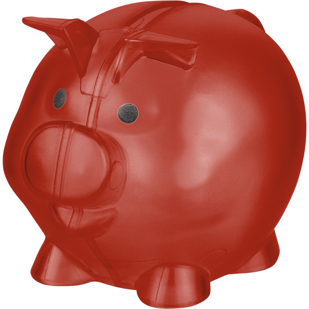 Újrahasznosított PS műanyagból készült, malacpersely. A hátoldalon recycled (újrahasznosított) alapanyagra utaló logó található.